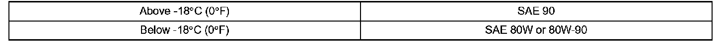 Oil grade: Hypoid gear oil API GL-5 or equivalent