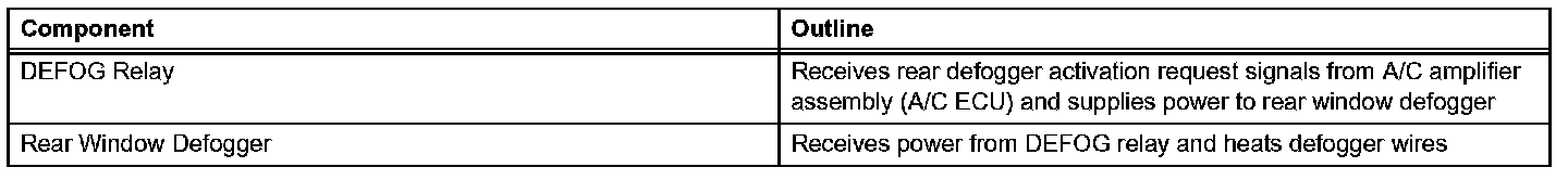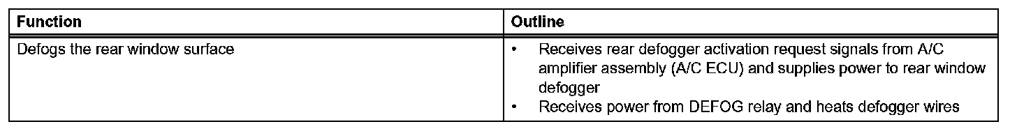 The defogger system's thin heater wires are attached to the inside of the rear window and defog the window surface quickly. The indicator light illuminates while the system is operating. The system automatically turns off after approximately 15 minutes.