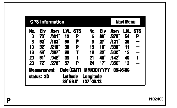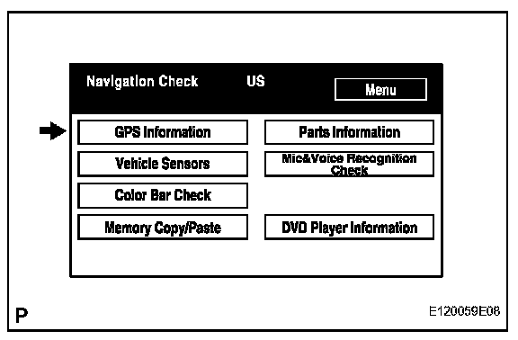 a. Select "GPS Information" from the "Navigation Check" screen.