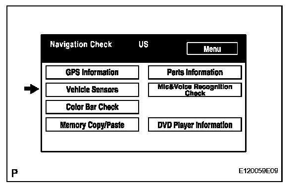 a. Select "Vehicle Sensors" from the "Navigation Check" screen.