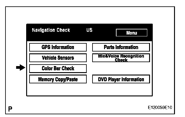 a. Select "Color Bar Check" from the "Navigation Check" screen.