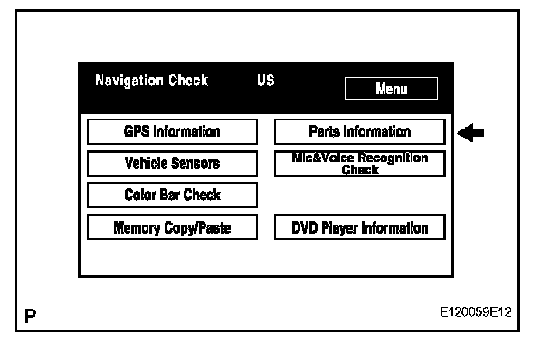 a. Select "Parts Information" from the "Navigation Check" screen.