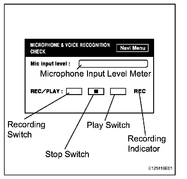 a. Select "Mic & Voice Recognition Check" on the "Display Check" screen to display "MICROPHONE & VOICE RECOGNITION CHECK" screen.