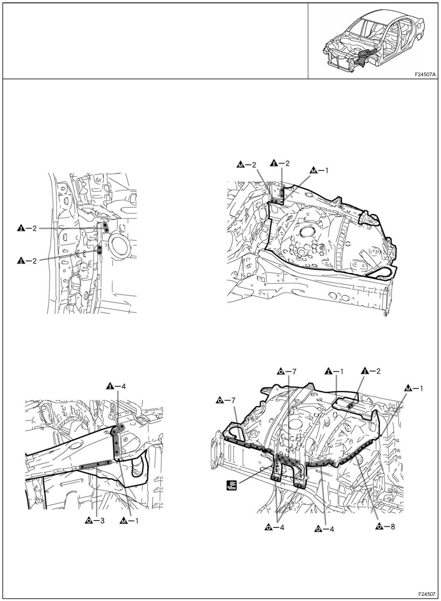 - After welding, apply body sealer and undercoating to the corresponding parts.