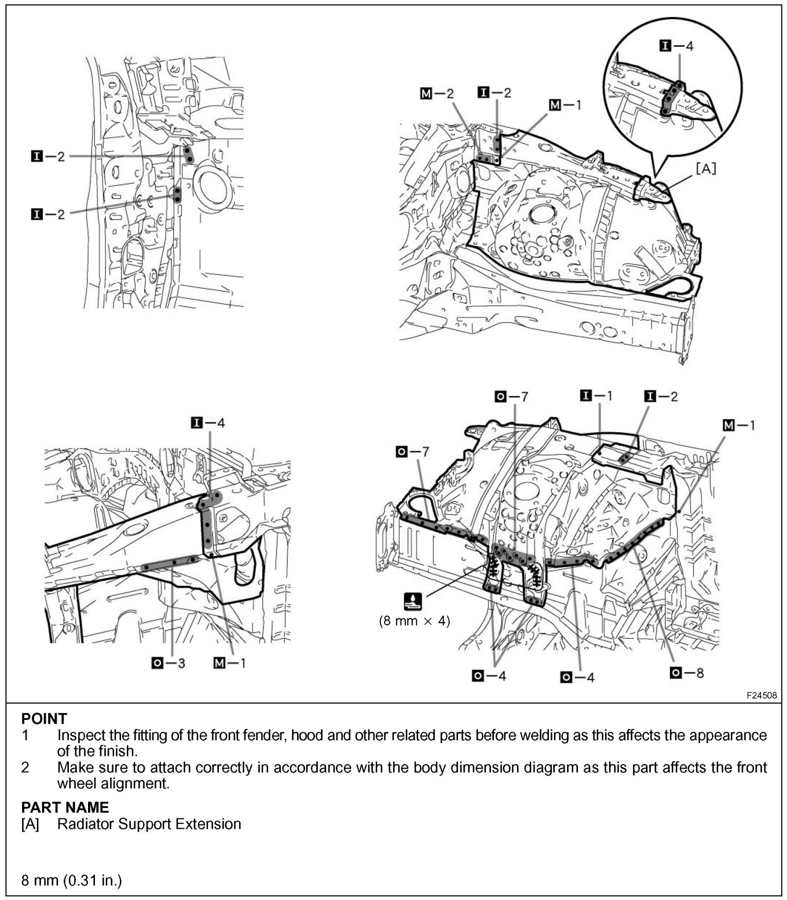 - Inspect the fitting of the related parts around the new parts before welding. This affects the appearance of the finish.