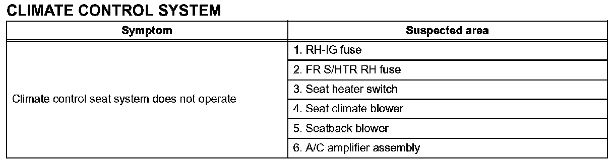 Problem Symptoms Table-Climate Control System: