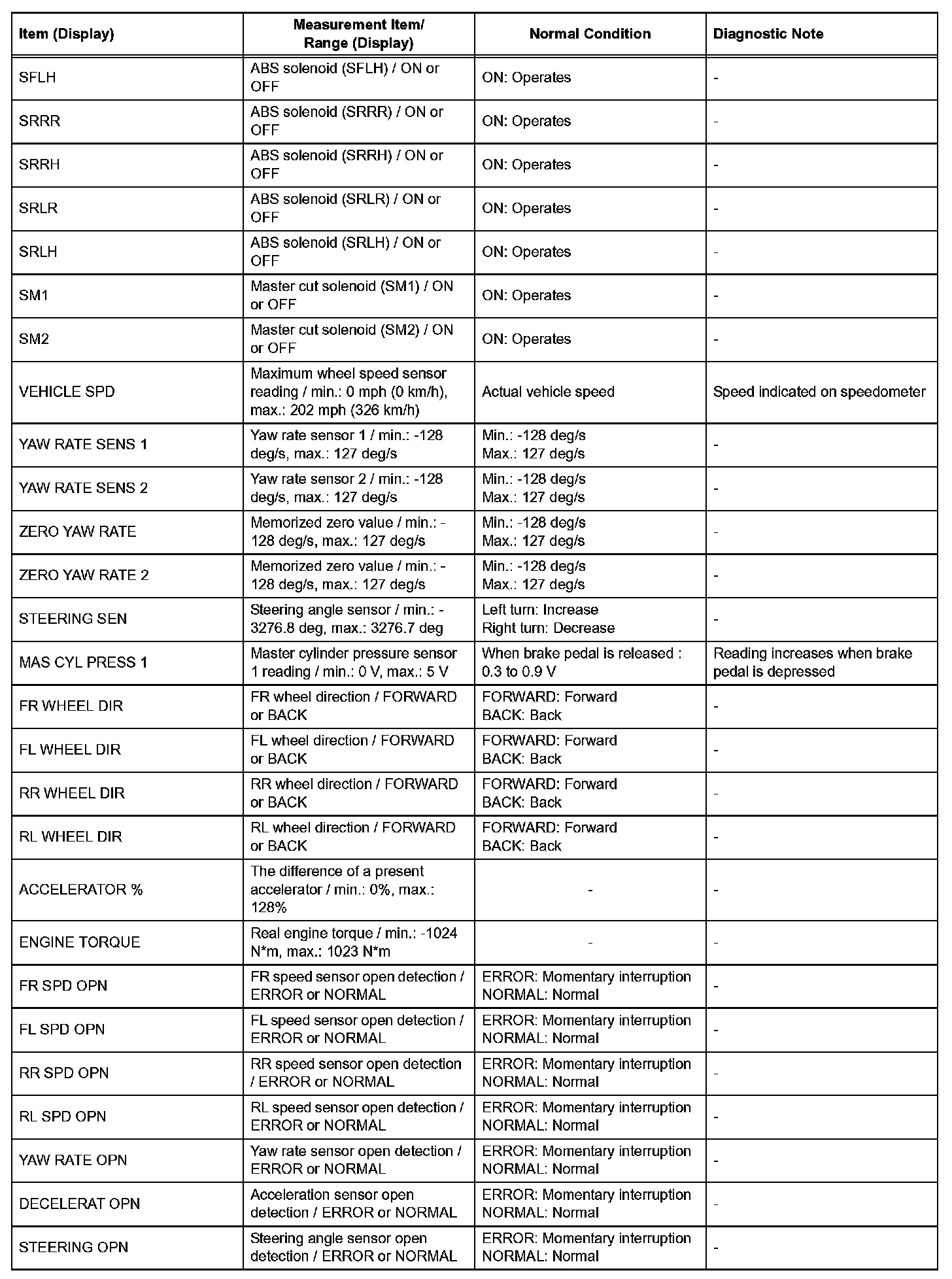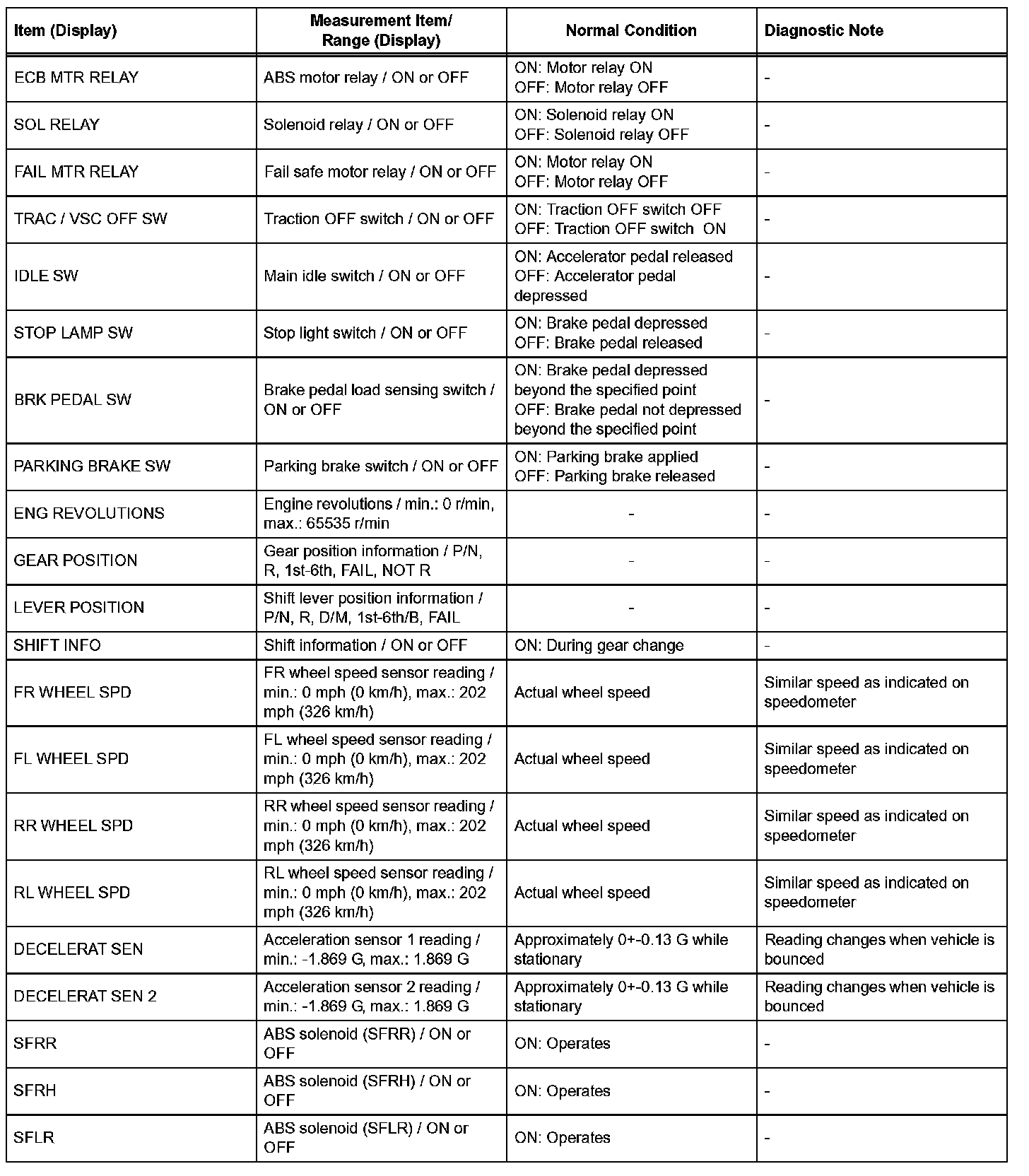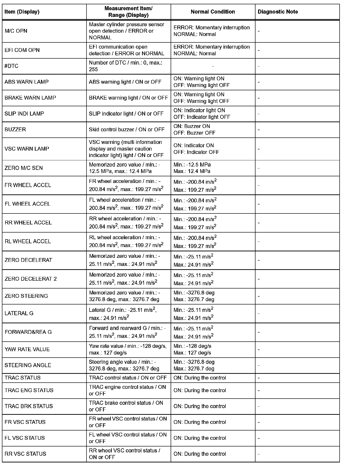 HINT: With the intelligent tester connected to the DLC3 and the engine switch on (IG), the ABS, TRAC and VSC data list can be displayed. Follow the prompts on the tester screen to access the Data List.