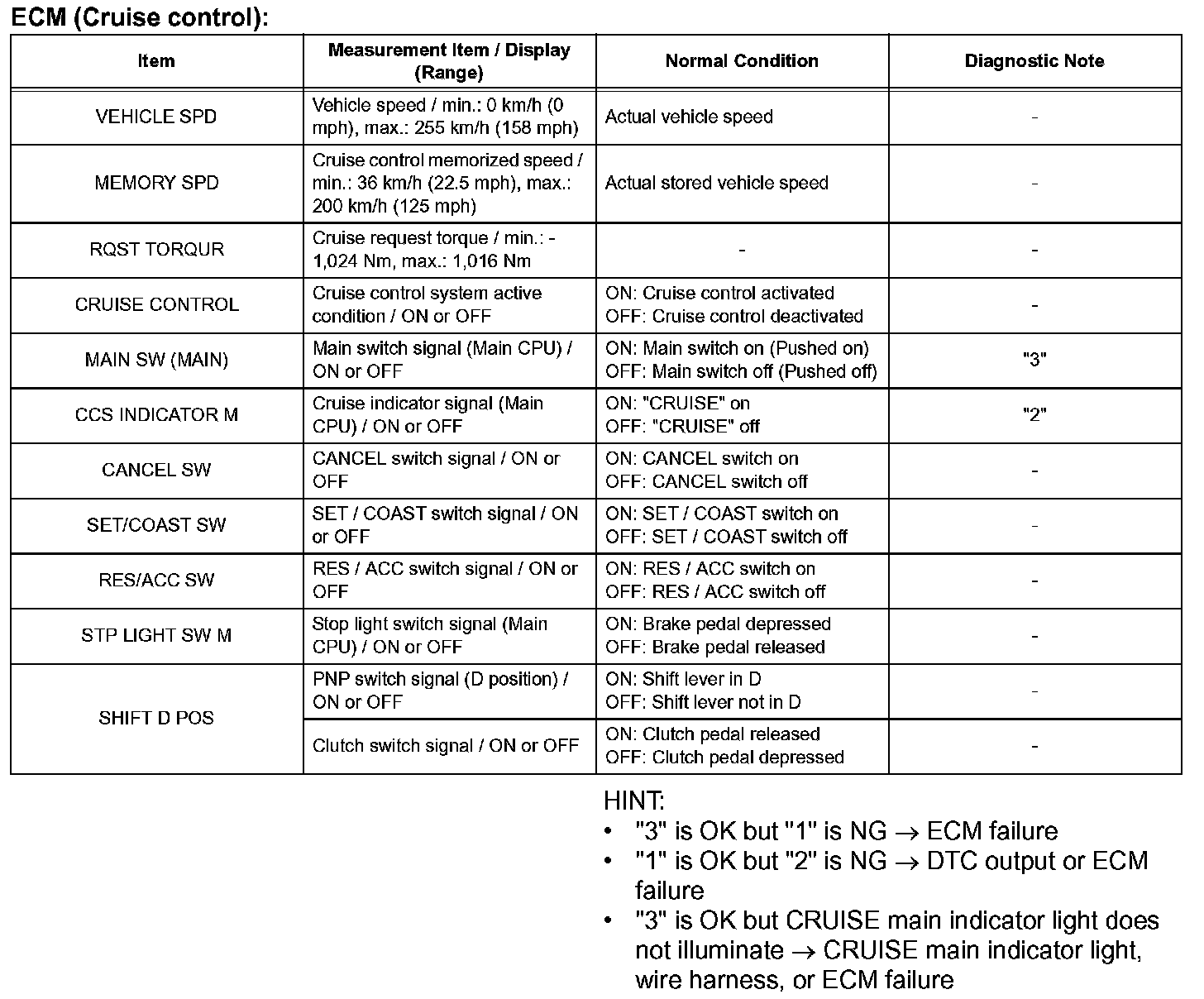 HINT: Using the intelligent tester's DATA LIST allows switch, sensor, actuator, and other item values to be read without removing any parts. Reading the DATA LIST early in troubleshooting is one way to save time.