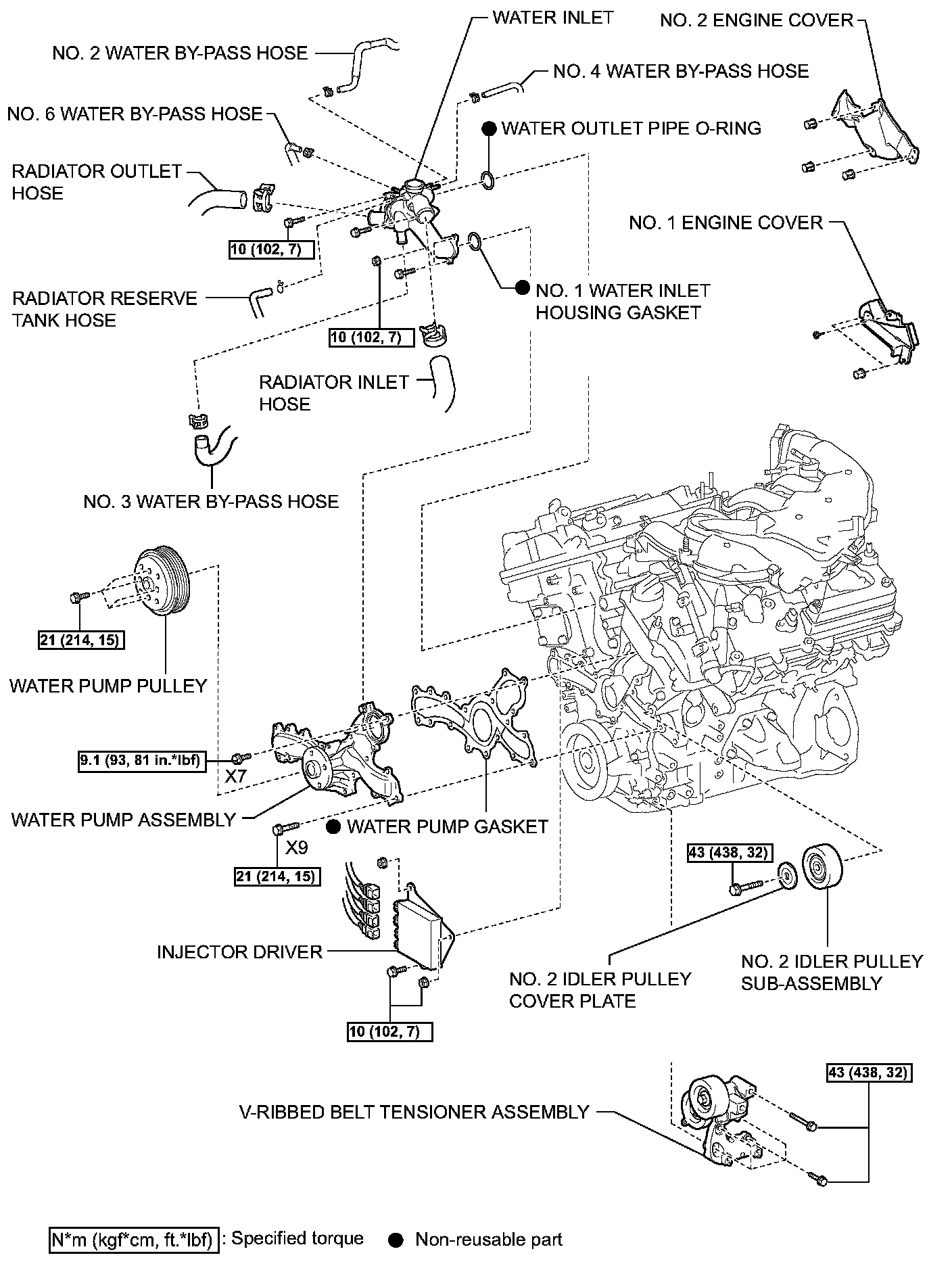 Torque: 43 Nm (438 kgf-cm, 32 ft. lbs.)