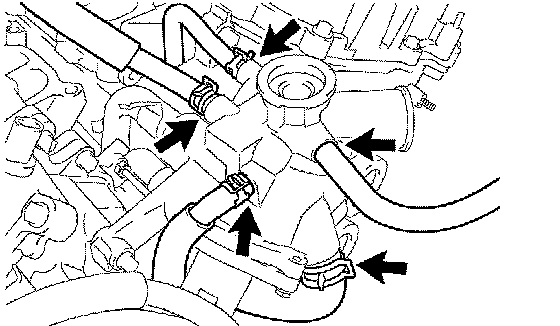 a. Disengage the 2 clamps and disconnect the radiator inlet hose and radiator outlet hose.