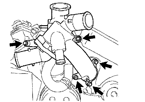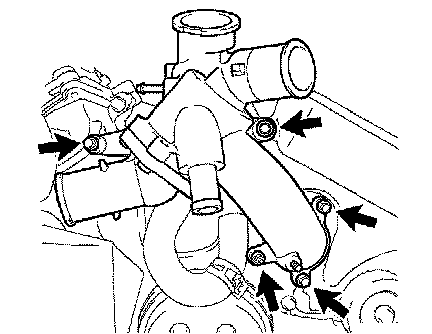 b. Remove the 4 bolts, nut and water inlet.