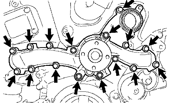 a. Remove the 16 bolts, water pump assembly and water pump gasket.