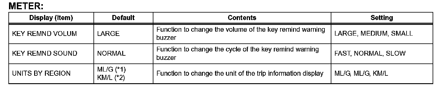 - When either the battery cable or the combination meter connector is disconnected, these buzzers are set on (enabled).