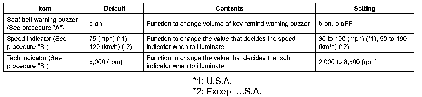 2. Seat Belt Buzzer ON/OFF setting (Procedure "A")