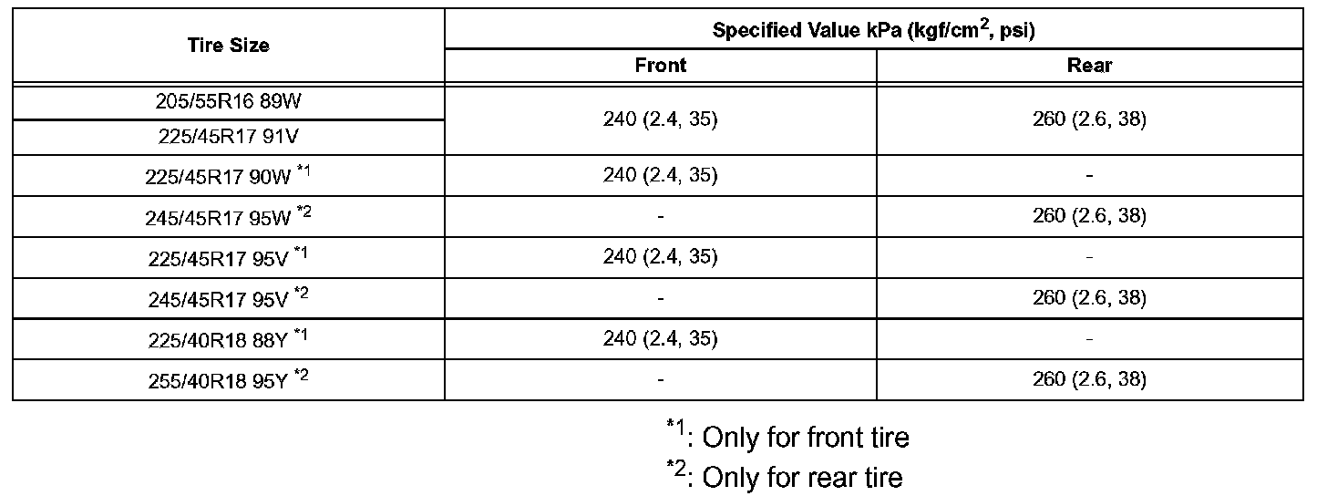 ^ In winter, as the tire pressure may decrease depending on the ambient temperature (The tire 2 pressure decreases about 10 kPa (0.2 kgf/cm 1.45 psi) with the ambient temperature will be 10°C (°F) down.).