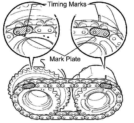 a. Align the mark plate and timing marks as shown in the illustration and install the chain.