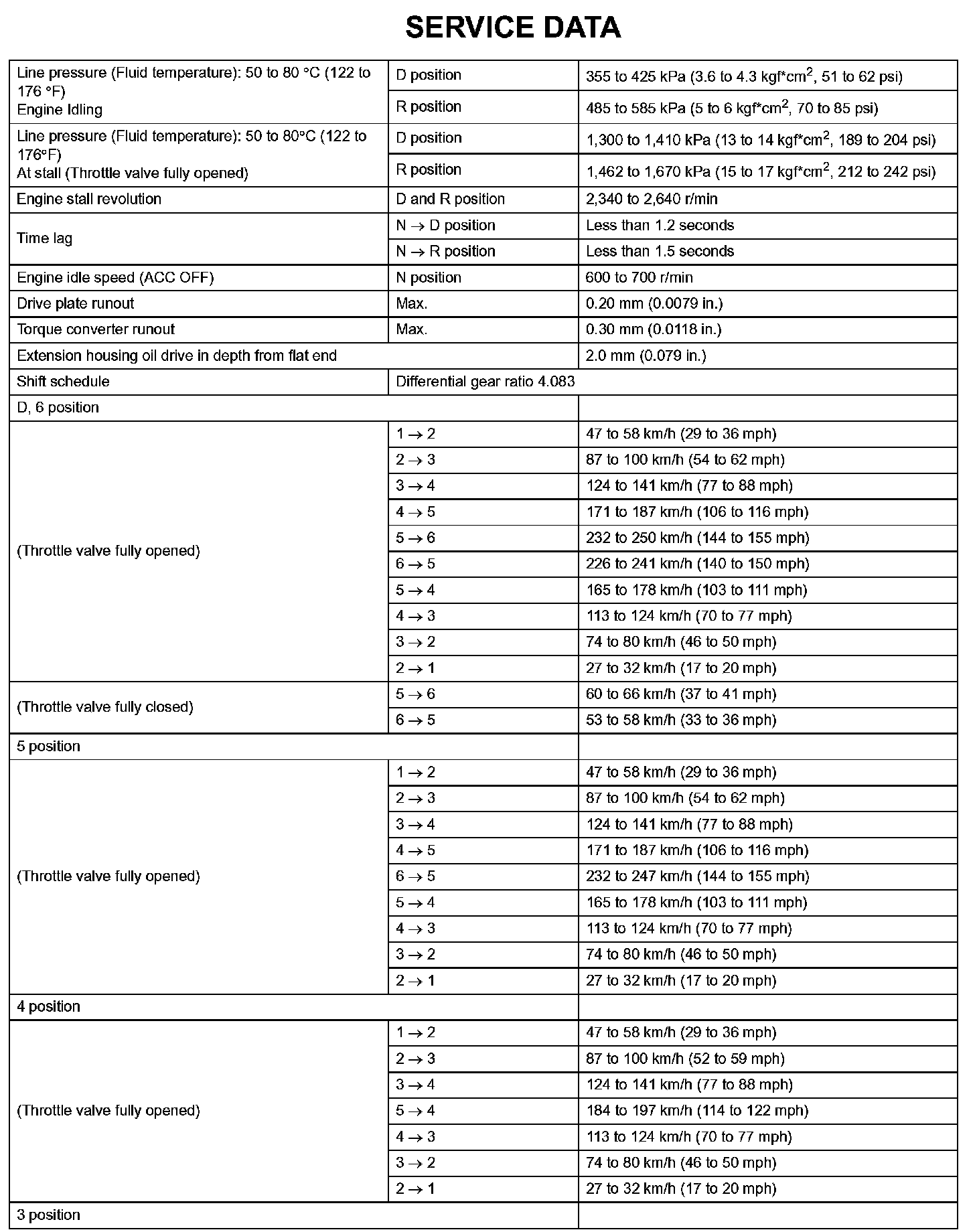 Automatic Transmission-Service Data (Part 4):