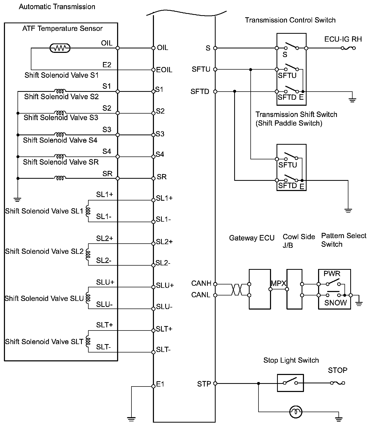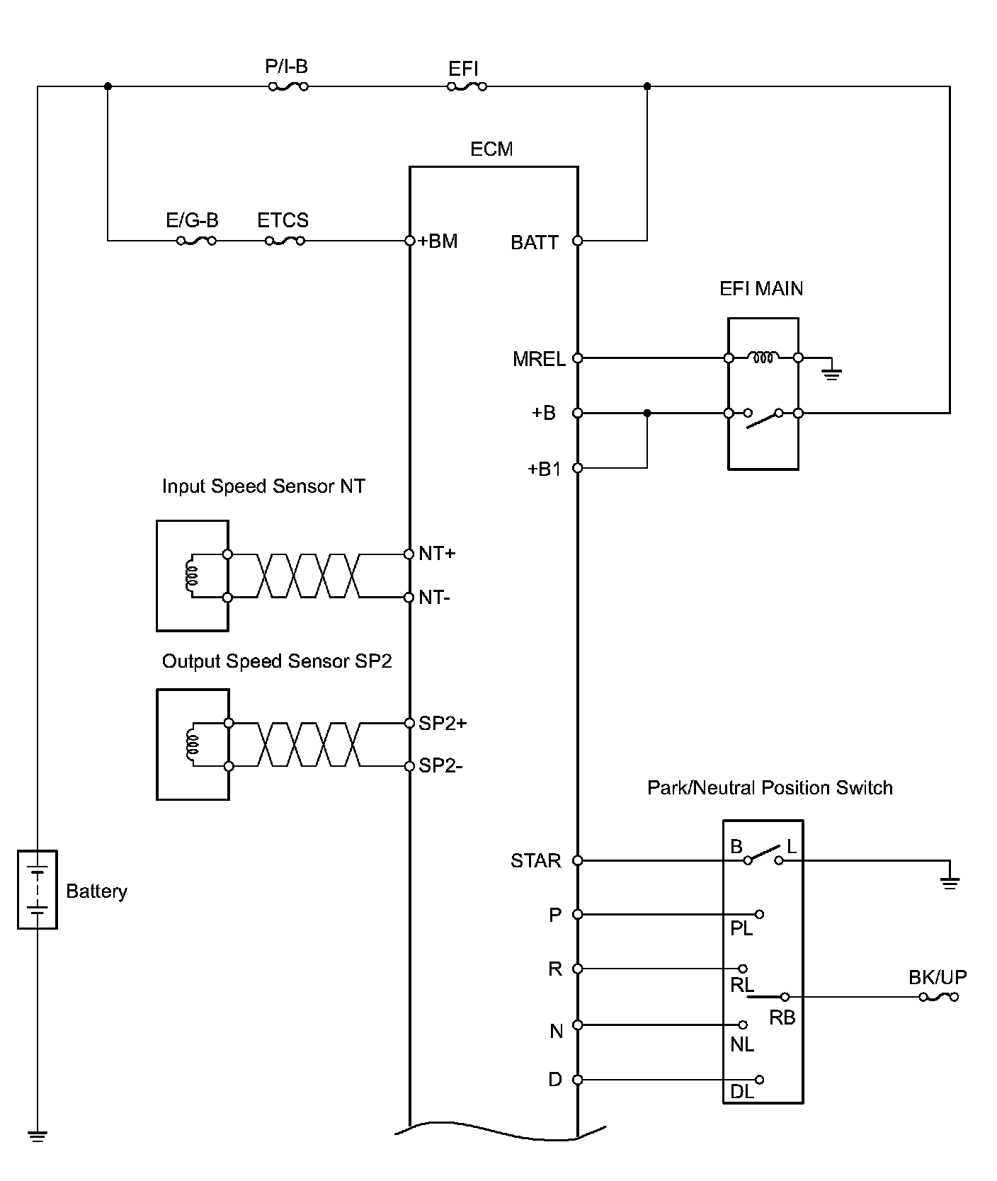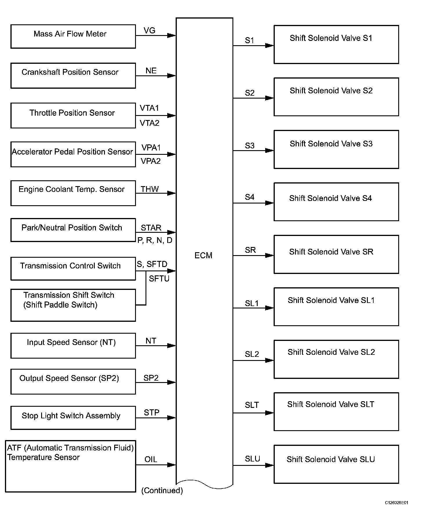 The configuration of the electronic control system in the A760E automatic transmission is as shown in the chart.