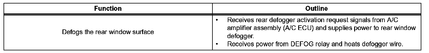 The defogger system's thin heater wires are attached to the inside of the rear window and defog the window surface quickly. The indicator light illuminates while the system is operating.The system automatically turns off after approximately 15 minutes.