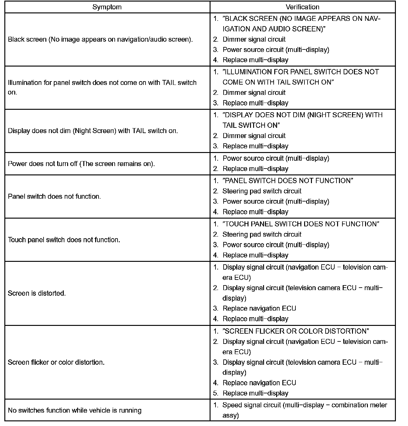 PROBLEM SYMPTOMS TABLEProblem Symptoms Table-Display Function: