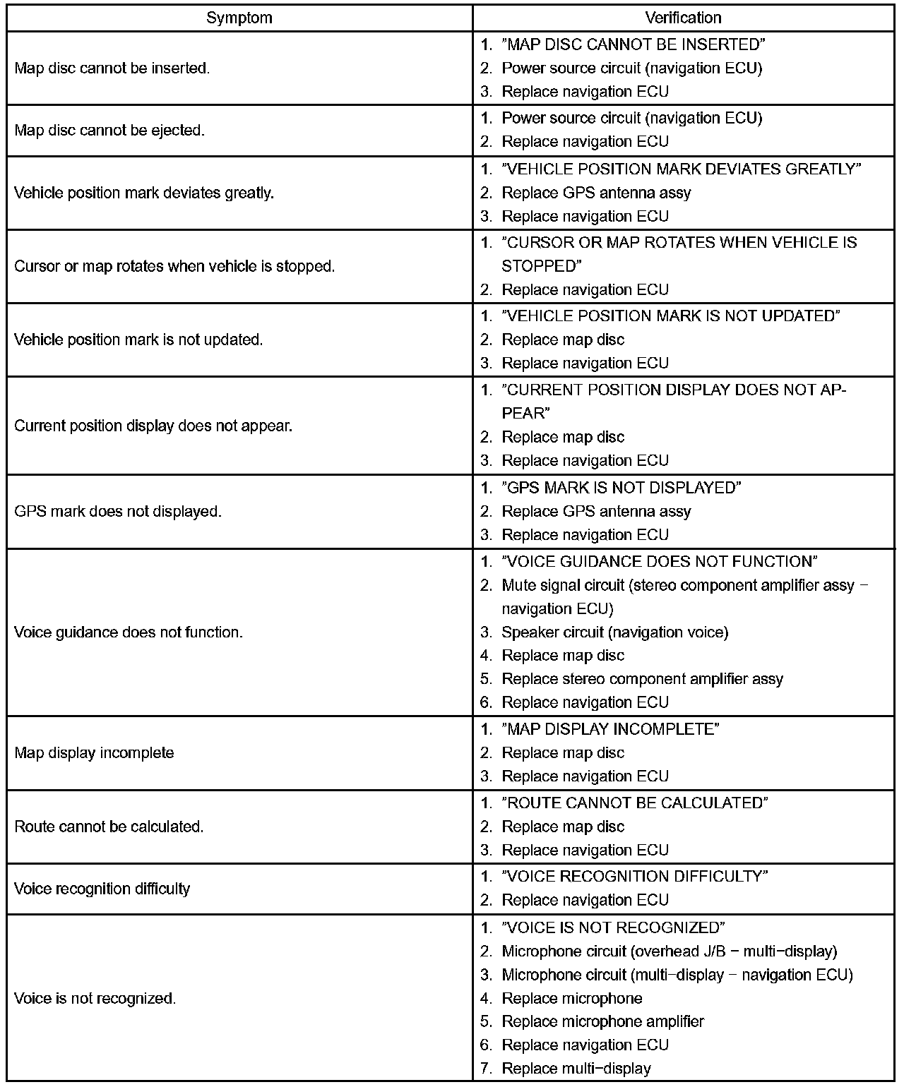 Problem Symptoms Table-Navigation Function: