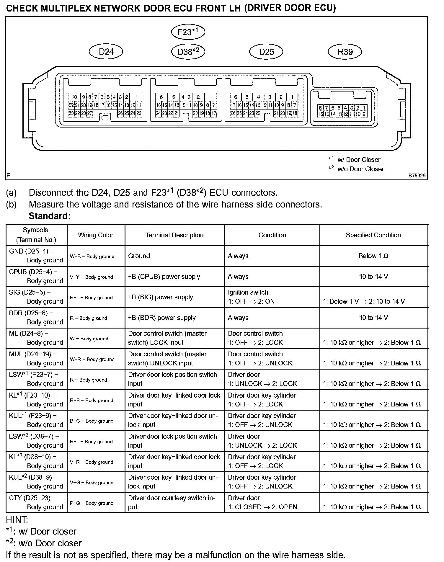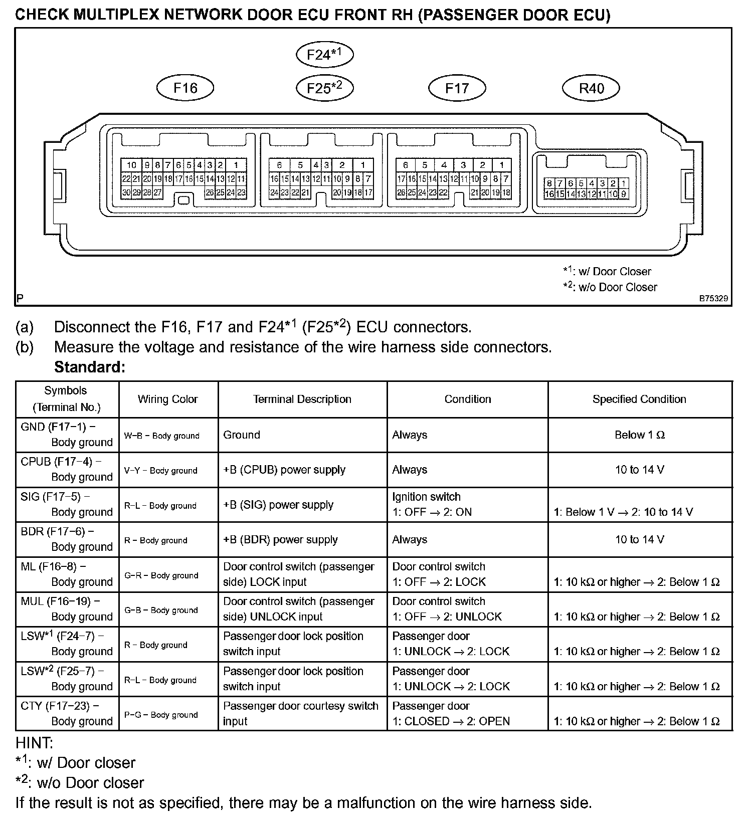 Pinout Values and Diagnostic Parameters