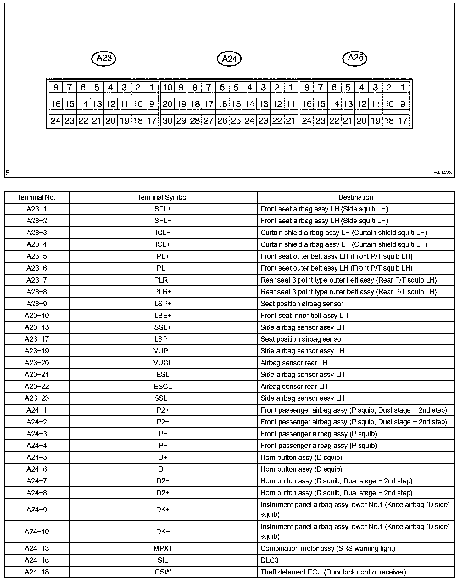 Terminals Of Control Modules/Pinouts-Airbag Sensor Assy Center (Part 1):