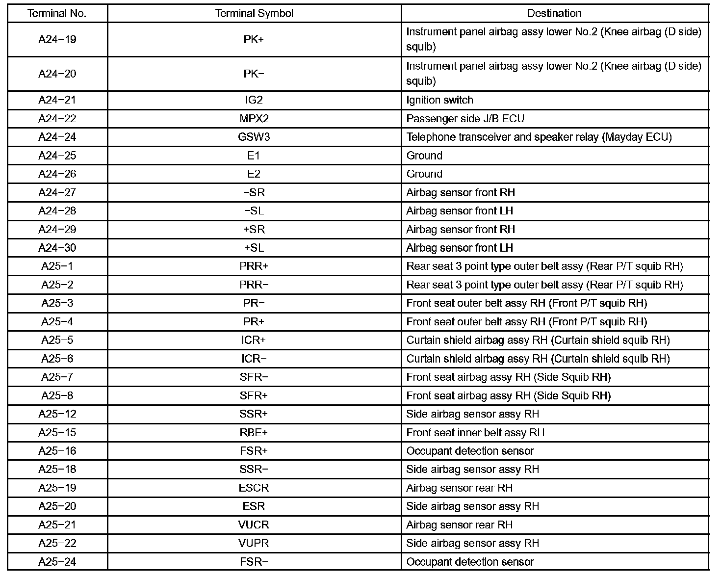 Terminals Of Control Modules/Pinouts-Airbag Sensor Assy Center (Part 2):