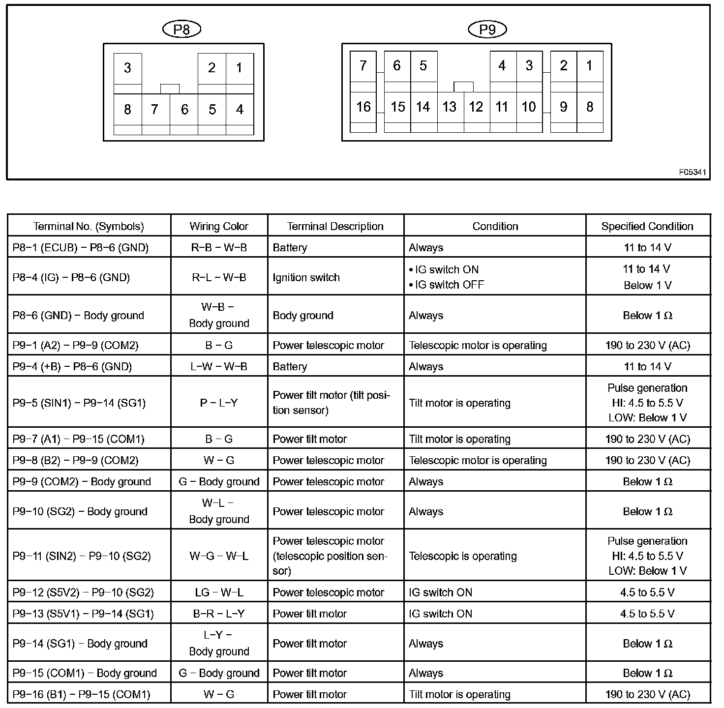 Terminals Of Control/Module Pinouts-Power Tilt And Power Telescopic Steering Column: