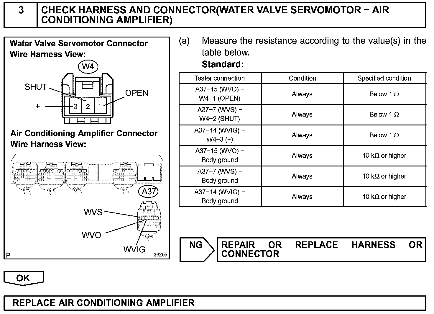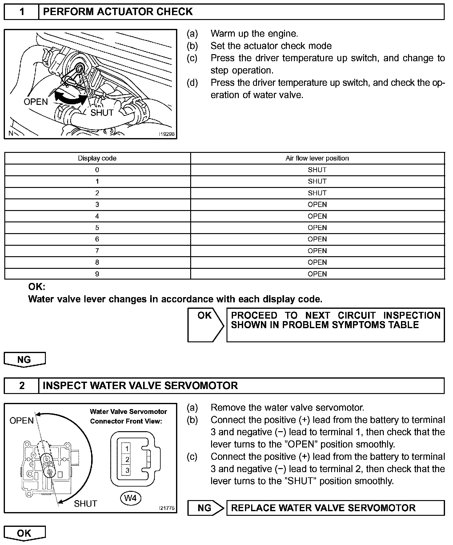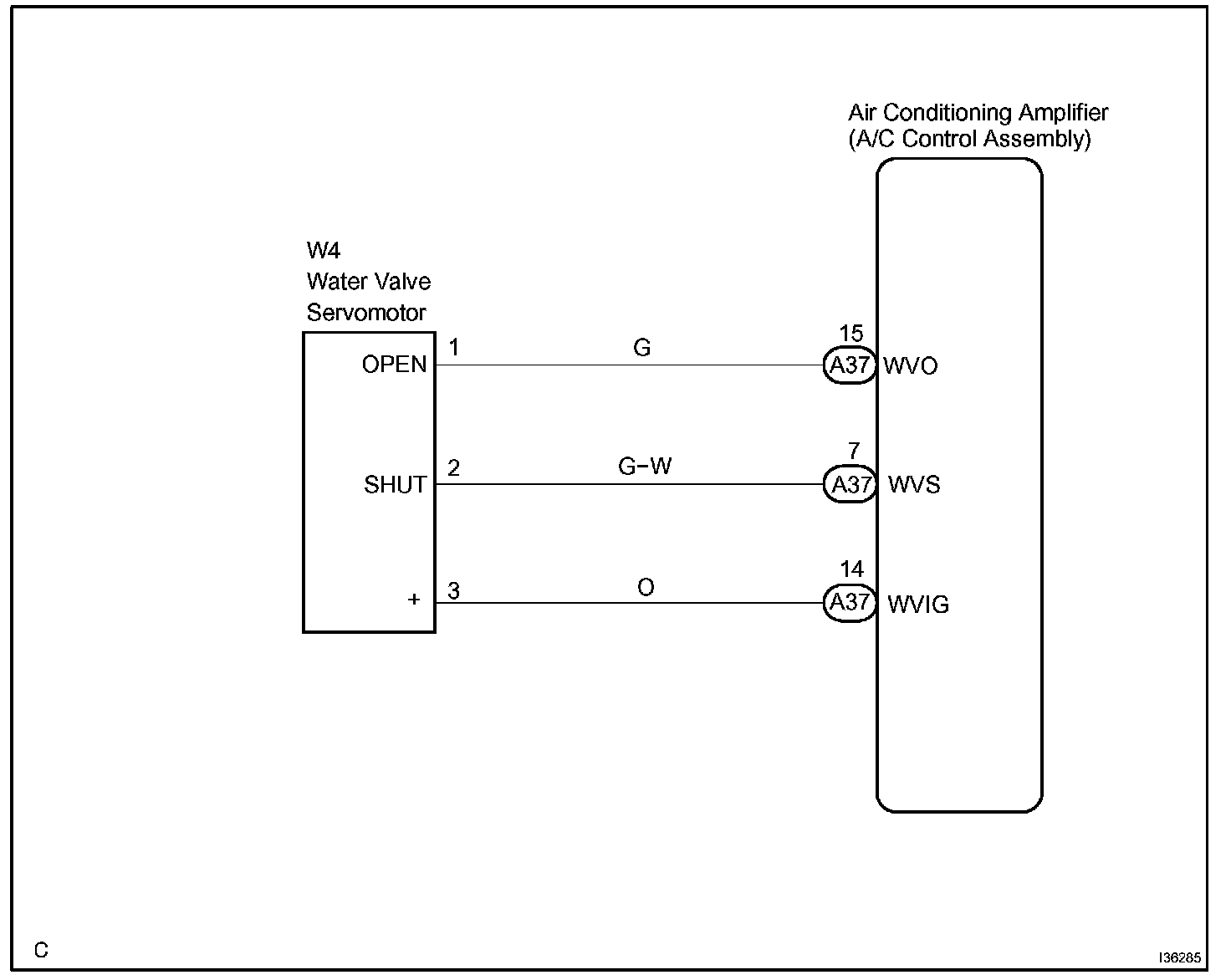 This circuit controls the amount of the coolant flowing to the heater core by a signal from the A/C amplifier, and adjusts the temperature at the air outlets.