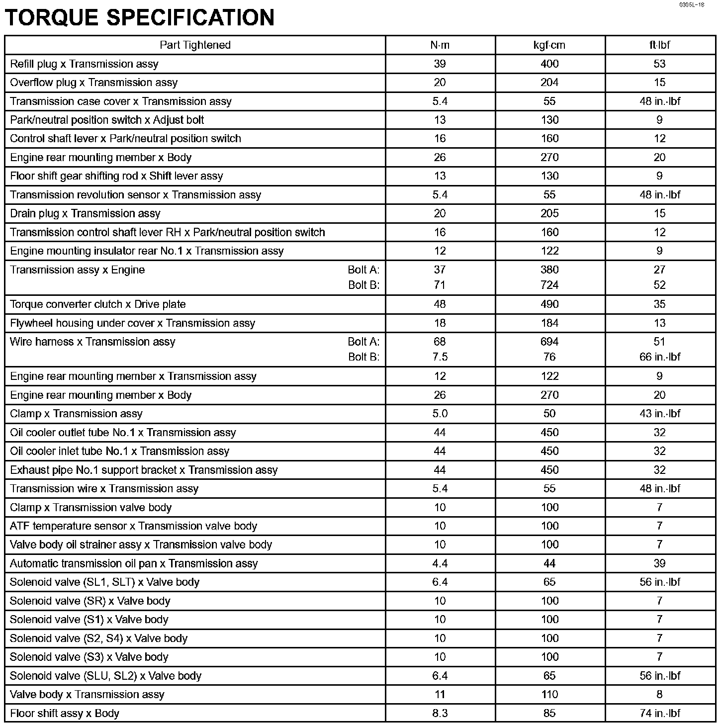 Automatic Transmission / Transaxle-Torque Specification: