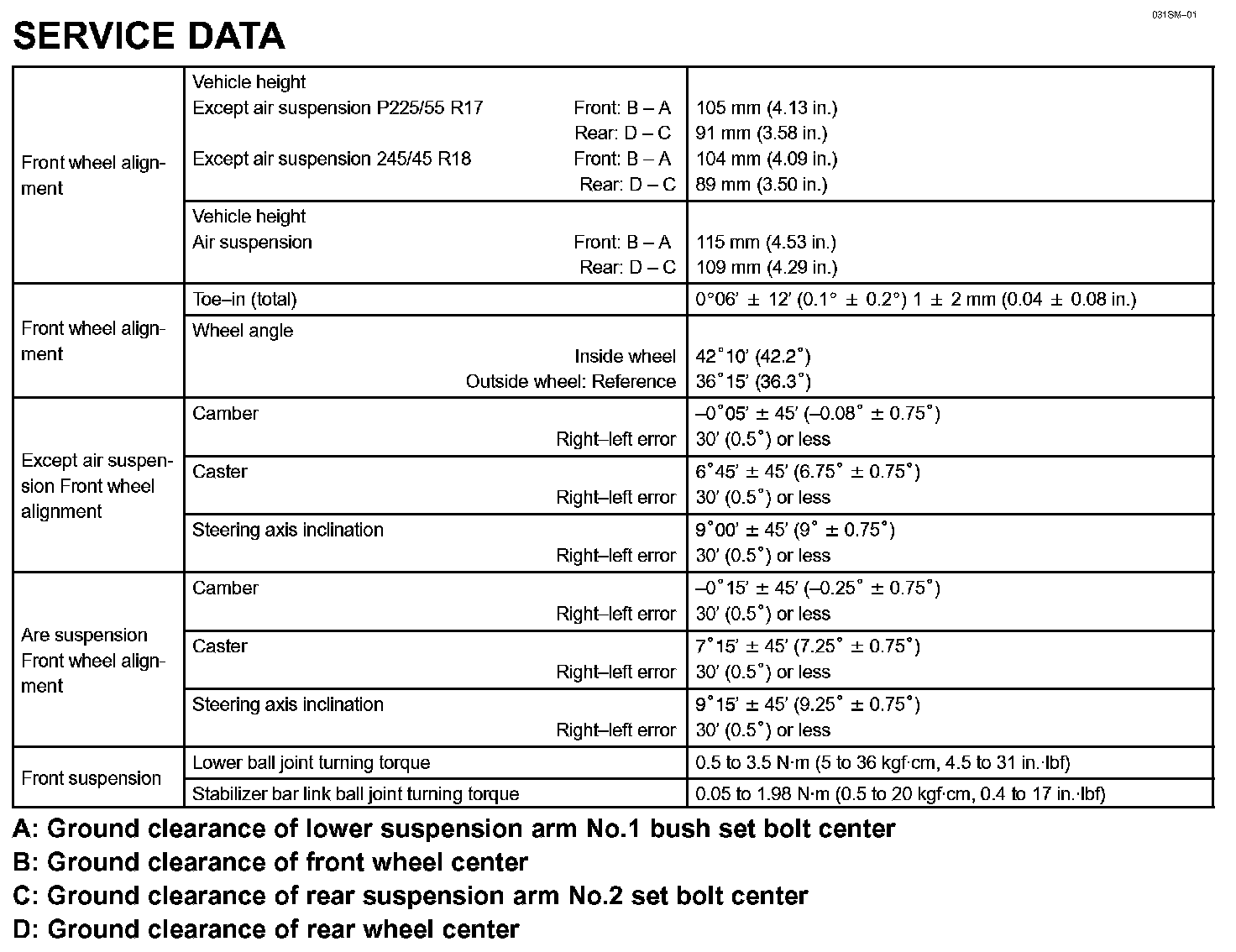 Front Suspension - Service Data: