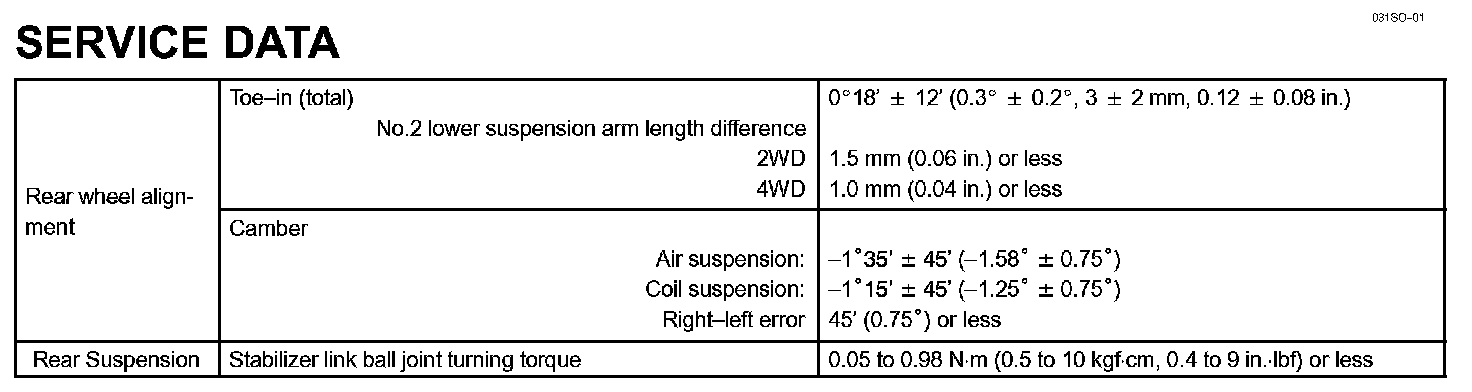 Rear Suspension - Service Data: