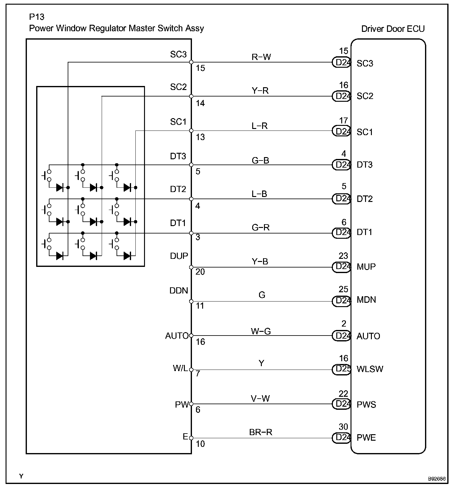 Power Window Regulator Master Switch Circuit (Driver Side)