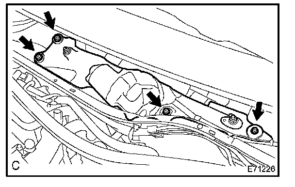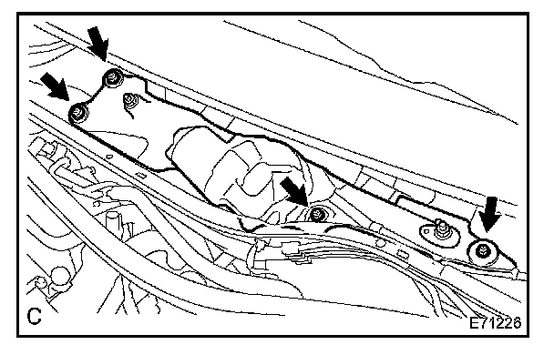 b. Remove the 4 bolts and the windshield wiper motor & link assembly.