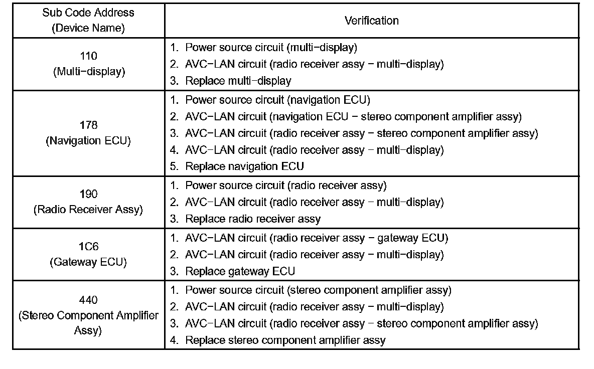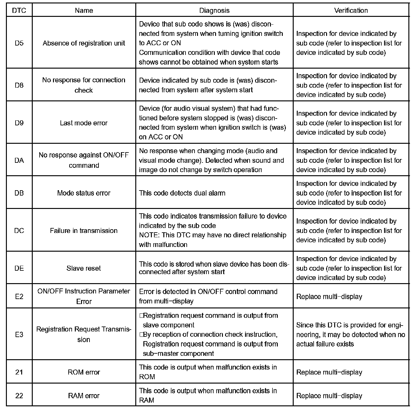 DIAGNOSTIC TROUBLE CODE CHARTHINT: Titles for each unit below are stated in the following order: part name (physical address) [name indicated by DTC].