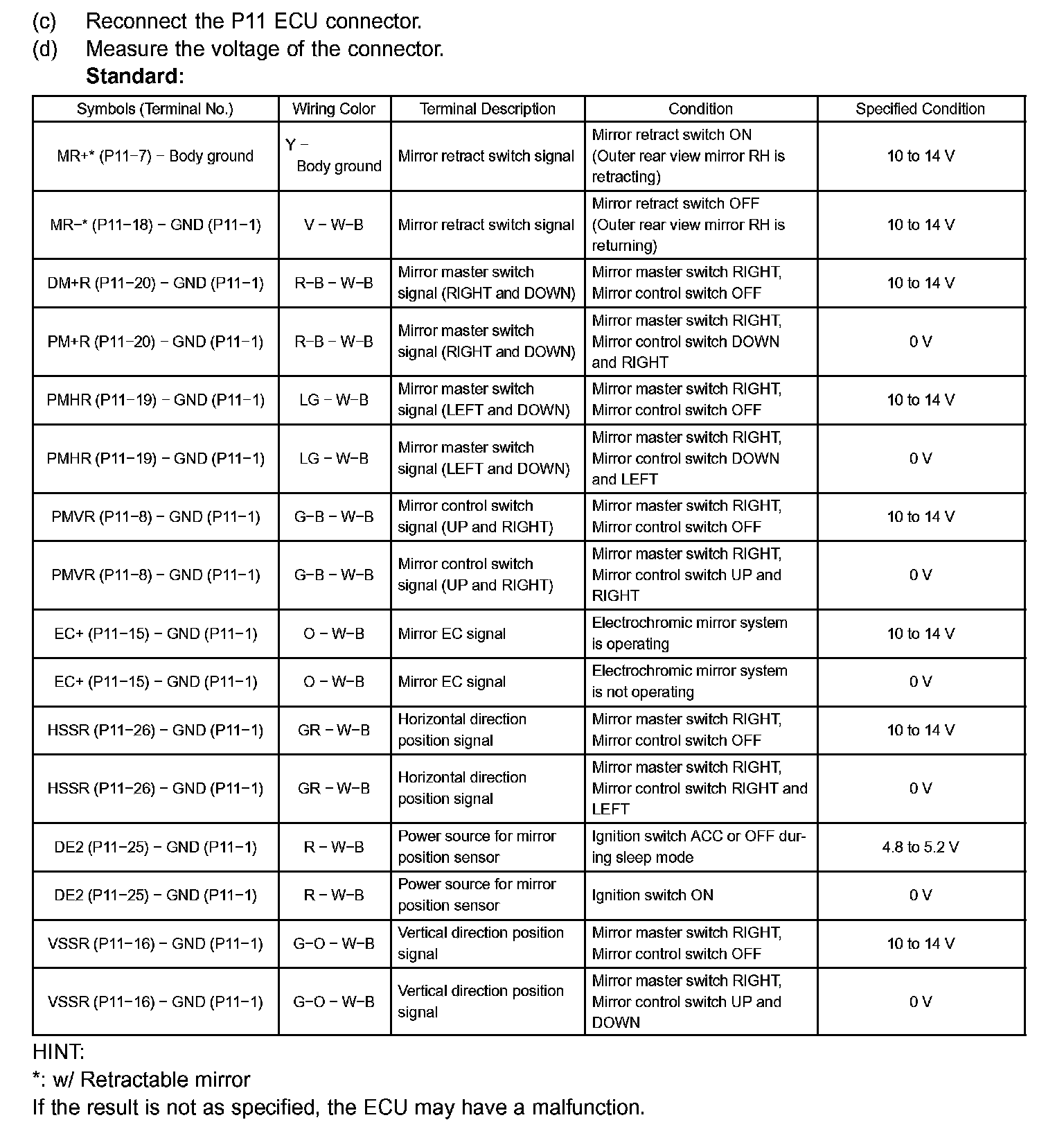 Pinout Values and Diagnostic Parameters