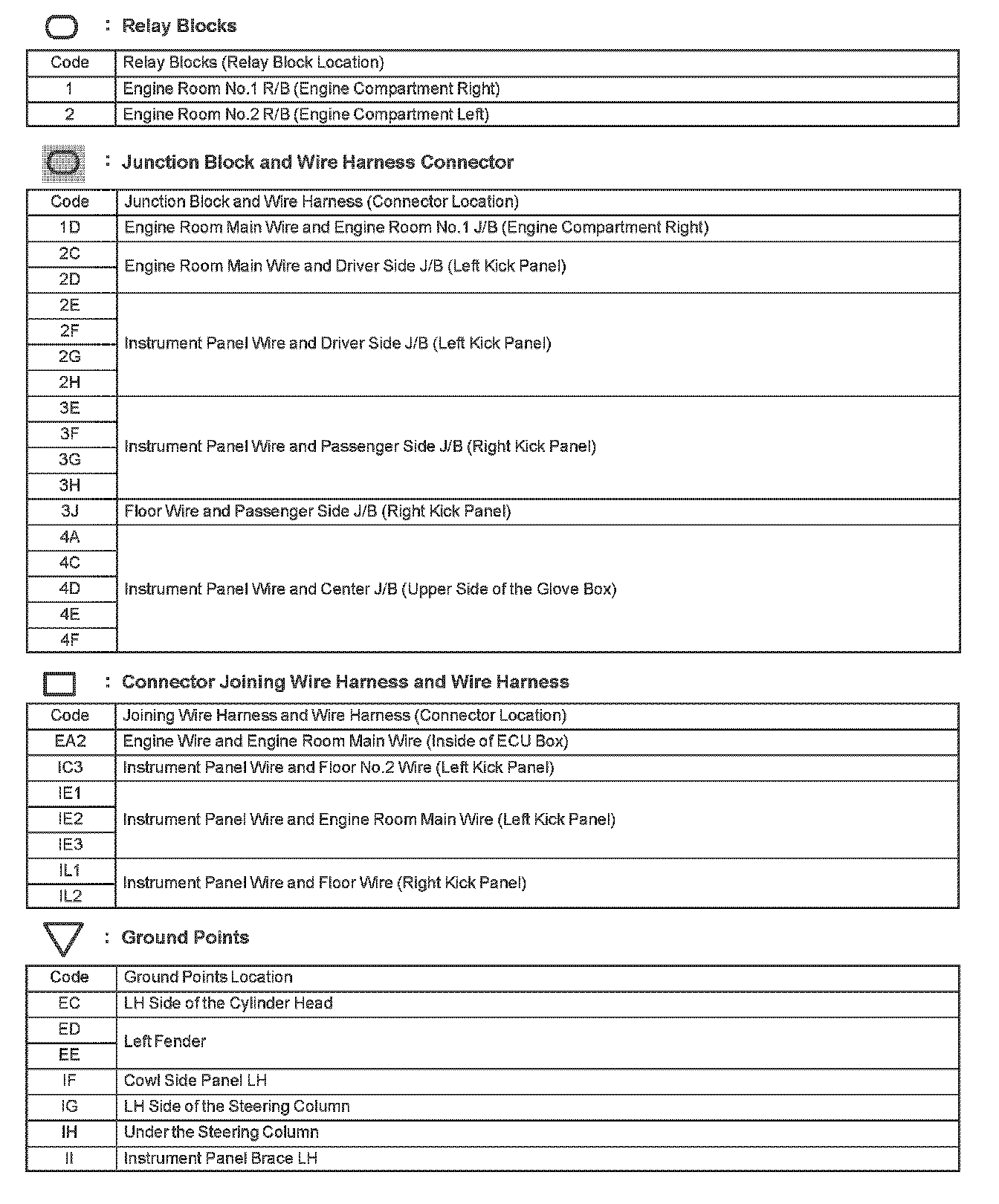 Locations: The locations of components, connectors, ground points, and splices referred to within these diagrams can be found at Vehicle Locations. Locations