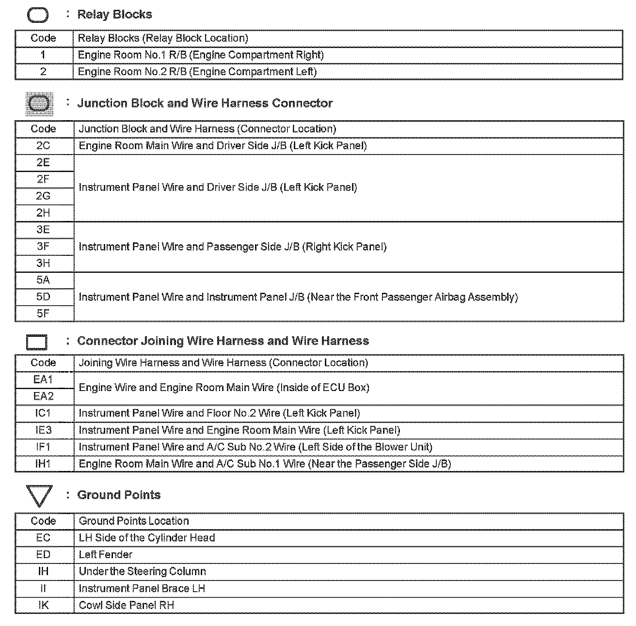 Locations: The locations of components, connectors, ground points, and splices referred to within these diagrams can be found at Vehicle Locations. Locations