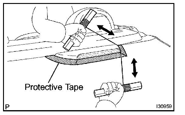 f. Cut through the double-sided tape by pulling the piano wire as shown in the illustration.