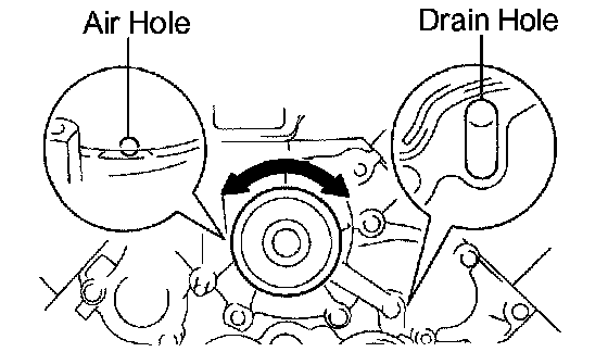 2. Turn the pulley, and check that the water pump bearing moves smoothly and quietly.