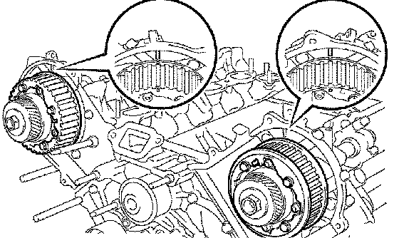 HINT: Turn the camshaft timing pulleys slightly clockwise to make installation of the timing belt easier.