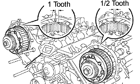 Camshaft timing pulley of LH bank: 1/2 of a tooth