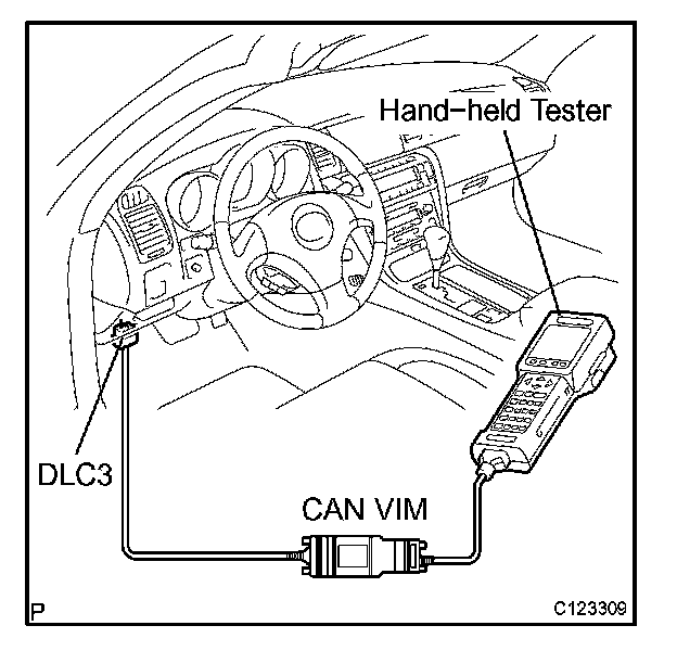 a. Connect the hand-held tester to the CAN VIM. Then connect the CAN VIM to the Data Link Connector 3 (DLC3).