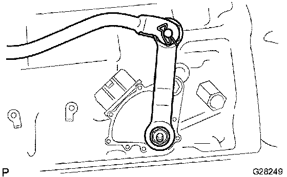 b. Depress the brake pedal. Check that the engine starts when the shift lever is on N or P, but does not start when the shift lever is in other positions.