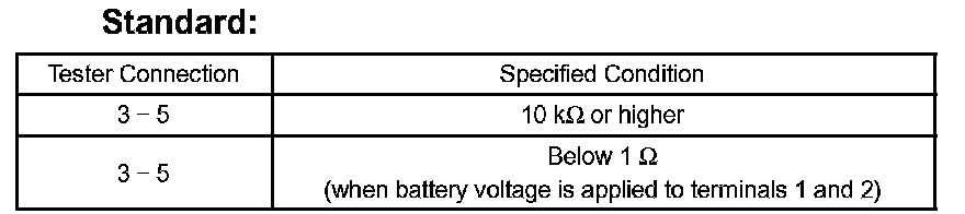 Measure the resistance of the relay. If the result is not as specified, replace the relay.