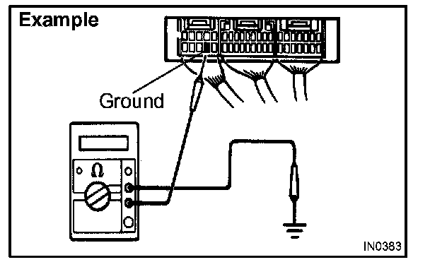 1. Measure the resistance between the ECU ground terminal and body ground.