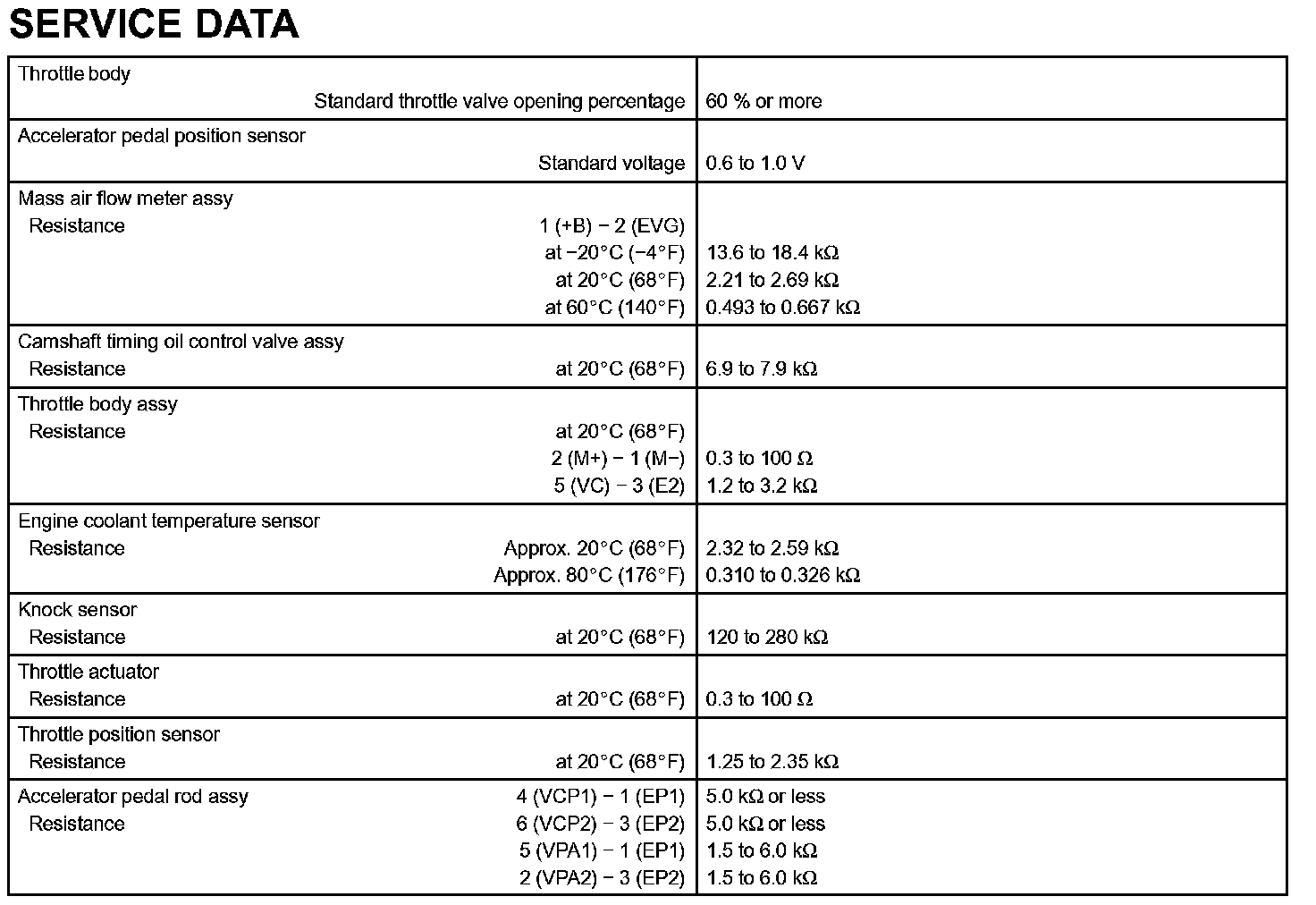 Engine Control System-Service Data: