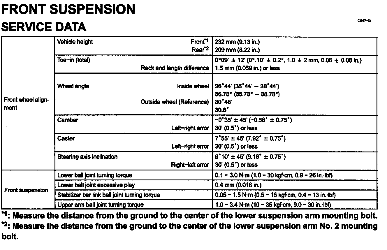 Front Suspension Specifications