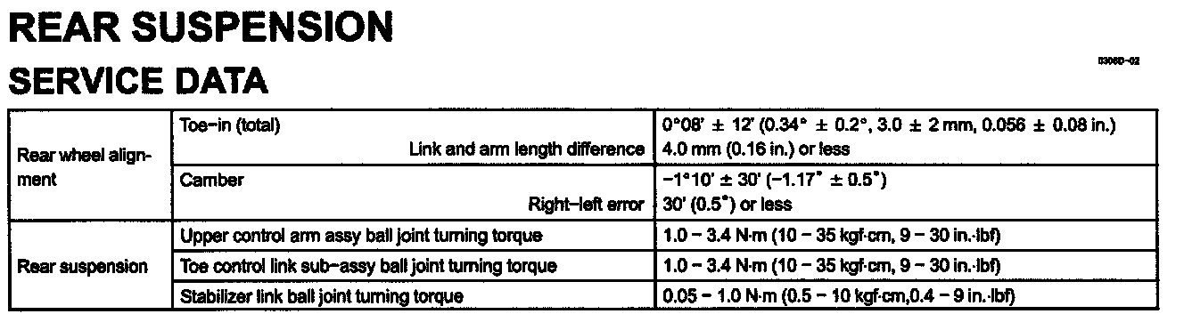 Rear Suspension Specifications